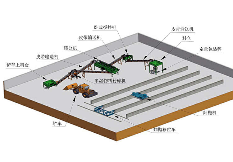 3、改善原料堆的通透性。翻堆系統(tǒng)能把物料處理成小的團塊,使質(zhì)地粘稠、密實的原料堆變得蓬松、富有彈性,形成適宜的孔隙度