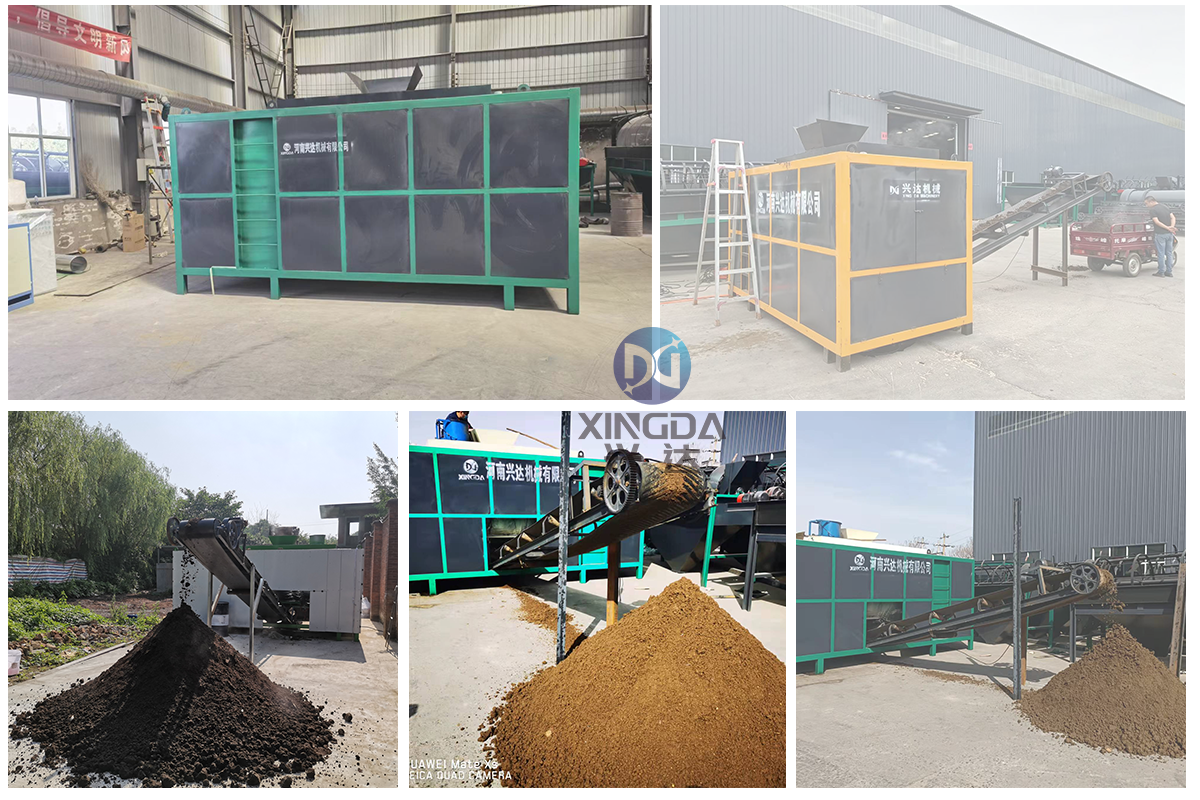 設(shè)備工作原理為將廢棄物(畜禽糞便、廚余垃圾、生活污泥等)、生物質(zhì)(秸稈及鋸末等)以及回流物料按照一定比例混合均勻,使含水率達到設(shè)計要求60-65%后進入立體好氧系統(tǒng),通過調(diào)節(jié)原料的水分、氧氣含量和溫度變化,使物料進行充分的好氧發(fā)酵分解,分解過程中釋放的熱量能夠使污泥自身溫度增高,溫度最高能夠達到80℃,污泥中的水分隨著溫度的上升被蒸發(fā),部分有機物被分解,從而使堆體體積減小,到達廢棄物的減量化處理。有機肥發(fā)酵罐通過通風(fēng)、充氧、攪拌等作用控制溫度在55~60℃之間,達到物料發(fā)酵處理的最佳溫度,在此溫度時,能夠使堆體中的大量病原菌和寄生蟲死亡,同時利用除臭系統(tǒng)對排放的氣體進行生物臭味,達到無害化處理的目的。高溫好氧發(fā)酵后得產(chǎn)品,可用于土壤改良、園林綠化、垃圾填埋覆蓋土等。